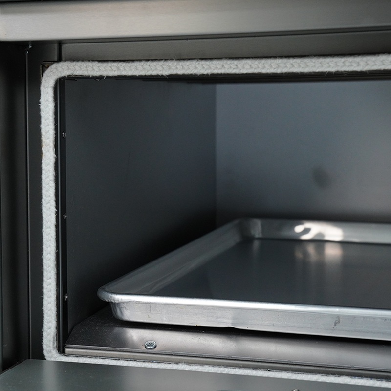 Khác biệt với các loại lò nướng thông thường không có gioăng cách nhiệt, lò nướng bánh dùng điện 1 tầng 2 khay HGD-20D được trang bị thêm dải đệm kín nhiệt ở cửa lò, giúp đóng mở kín khít hơn, hạn chế tối đa hơi nhiệt bị thất thoát ra ngoài.