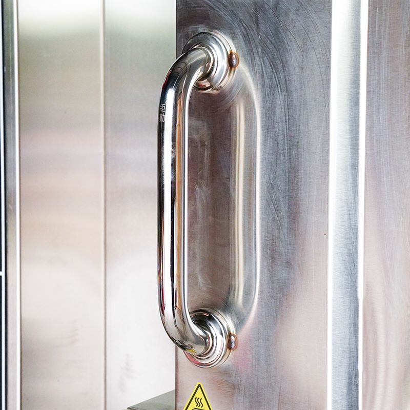 Người vận hành có thể điều chỉnh nhiệt độ và cài đặt hẹn giờ thông minh. Khi hết thời gian, lò sẽ phát tín hiệu báo, giúp người dùng chủ động kiểm tra và kết thúc mẻ quay đúng thời điểm, không cần đứng canh liên tục.