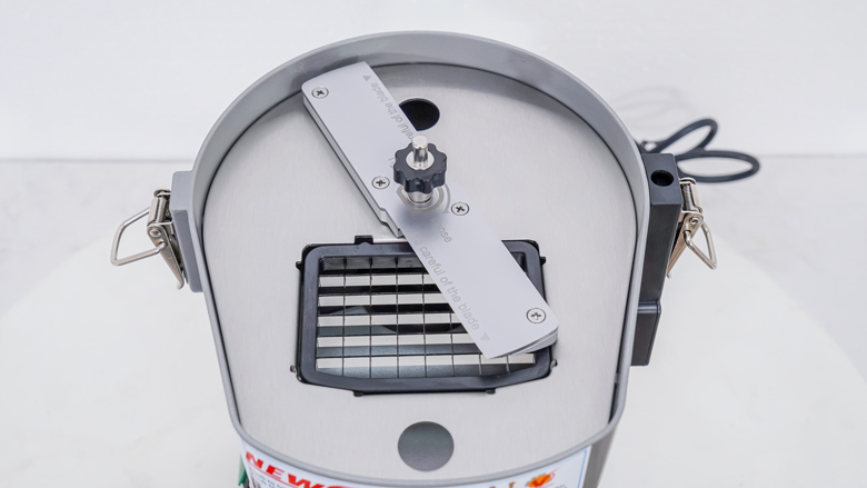 Bước 1: Lắp lưỡi dao vào máy tùy theo nhu cầu thái dạng lát, sợi hay hạt lựu và kích cỡ lựa chọn. Lưỡi dao sau khi lắp sẽ được cố định ở trục dao vào đậy kín trong vỏ máy.
