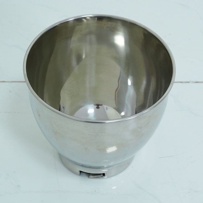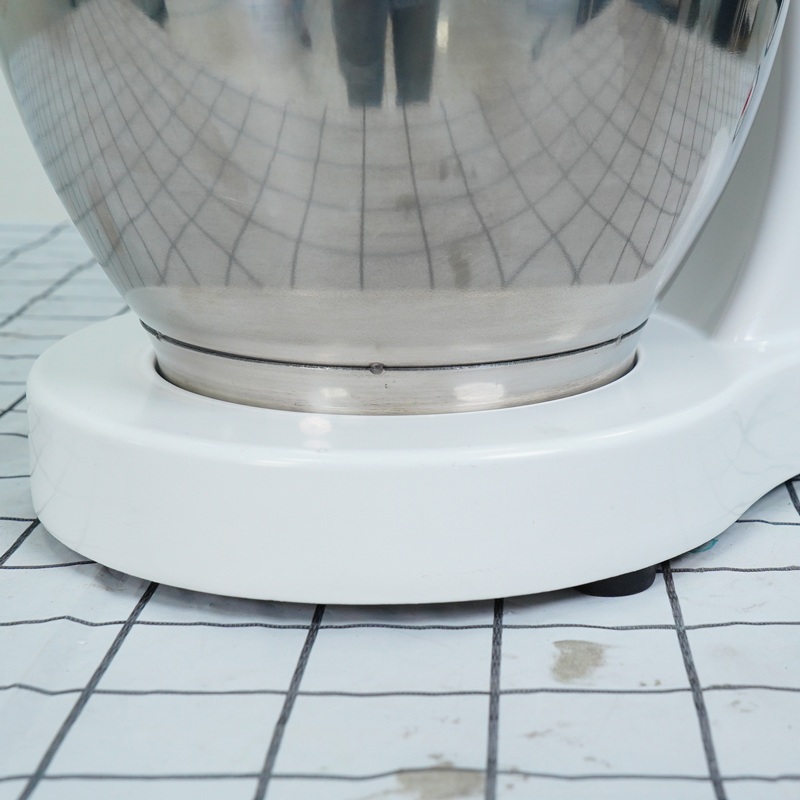 Càng đánh và cối trộn bột tiếp xúc trực tiếp với nguyên liệu được làm từ chất liệu inox 201 không han gỉ, đảm bảo vệ sinh an toàn thực phẩm.