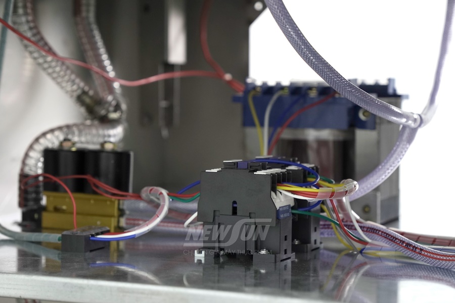 Máy đóng gói và hút chân không chà bông DZQ520 NEWSUN được trang bị 2 thanh hàn đối xứng dài 52cm, cách nhau 44cm, cho phép hút cùng lúc 4 túi 20×30cm hoặc 2 túi 25×35cm, giúp tiết kiệm thời gian và tăng năng suất đóng gói.