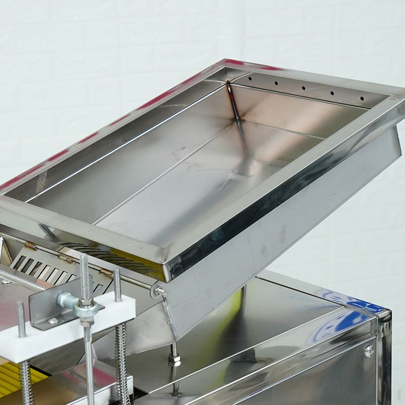 – Toàn bộ máy được chế tạo từ inox 201 cao cấp, có khả năng chống gỉ và đảm bảo an toàn vệ sinh thực phẩm. Bề mặt inox nhẵn, sáng giúp dễ lau chùi sau mỗi ca làm việc, hạn chế bám bẩn và duy trì độ bền lâu dài. Thiết kế tổng thể vừa chắc chắn, vừa tiện lợi, phù hợp cho cả cơ sở quy mô nhỏ và vừa.