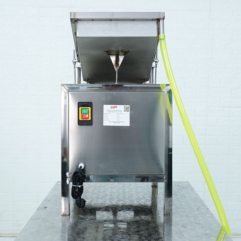 Lưu ý: Máy lột vỏ trứng cút NS-MLVTC-300 không được trang bị hệ thống tuần hoàn nước bên trong. Khi vận hành máy, người dùng cần kết nối đầu ống nước của máy với nguồn cấp nước bên ngoài để cung cấp nước liên tục trong quá trình lột vỏ. Việc cấp nước đầy đủ sẽ giúp quá trình bóc vỏ trứng diễn ra hiệu quả hơn, hạn chế vỡ trứng và đảm bảo trứng sau khi lột được sạch vỏ.