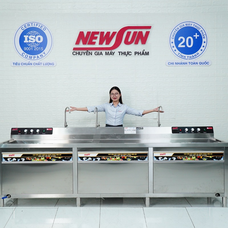Điện máy NEWSUN là đơn vị trực tiếp sản xuất và phân phối máy rửa bát siêu âm chậu đôi 3m có sục khí NS-3000, không qua trung gian với mức giá cạnh tranh và chất lượng kiểm soát chặt chẽ từ khâu vật liệu đến hoàn thiện.